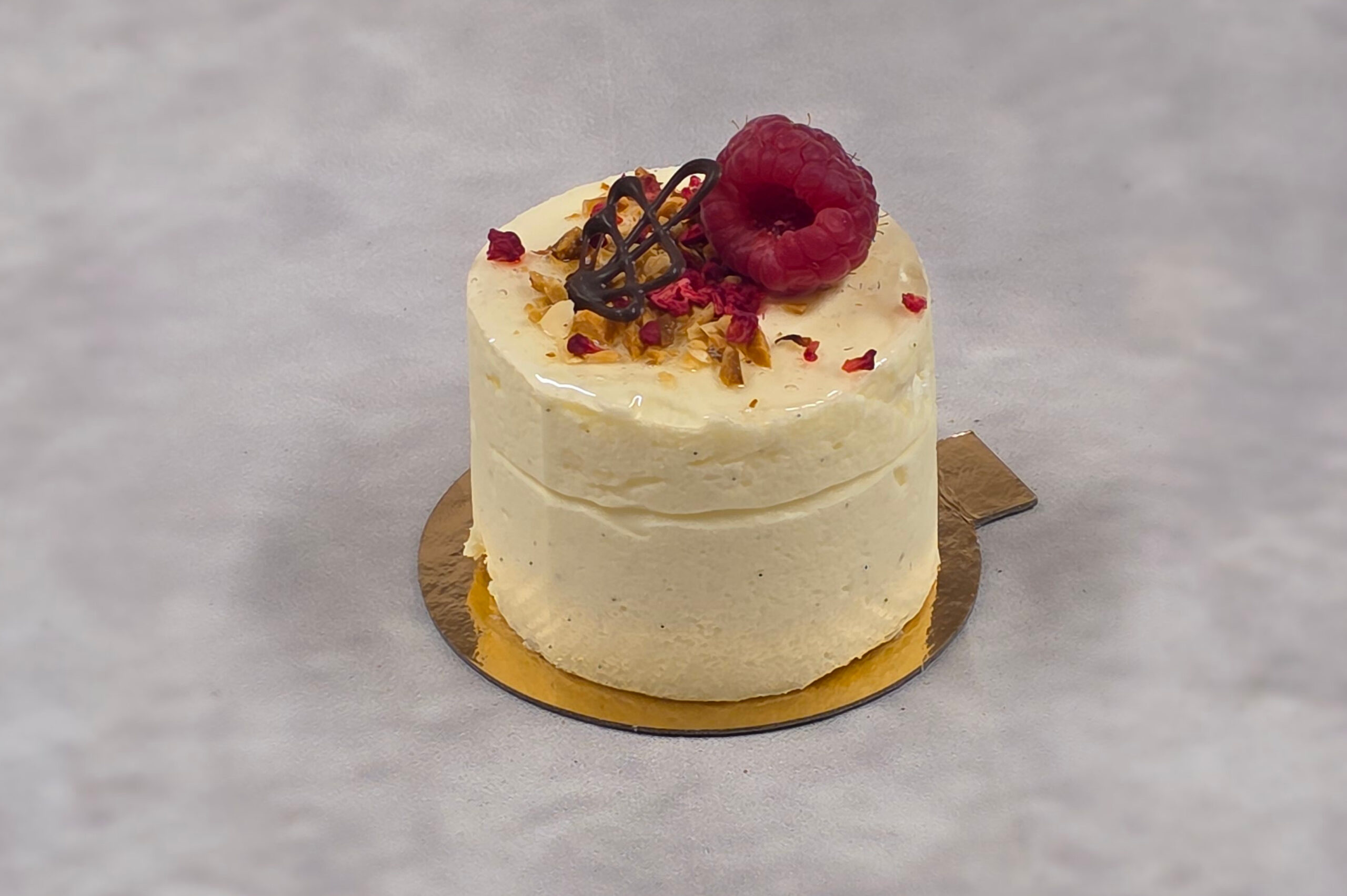 Äggvita, socker, hasselnötter, grädde, vaniljstång, gelatin, hallon och choklad.