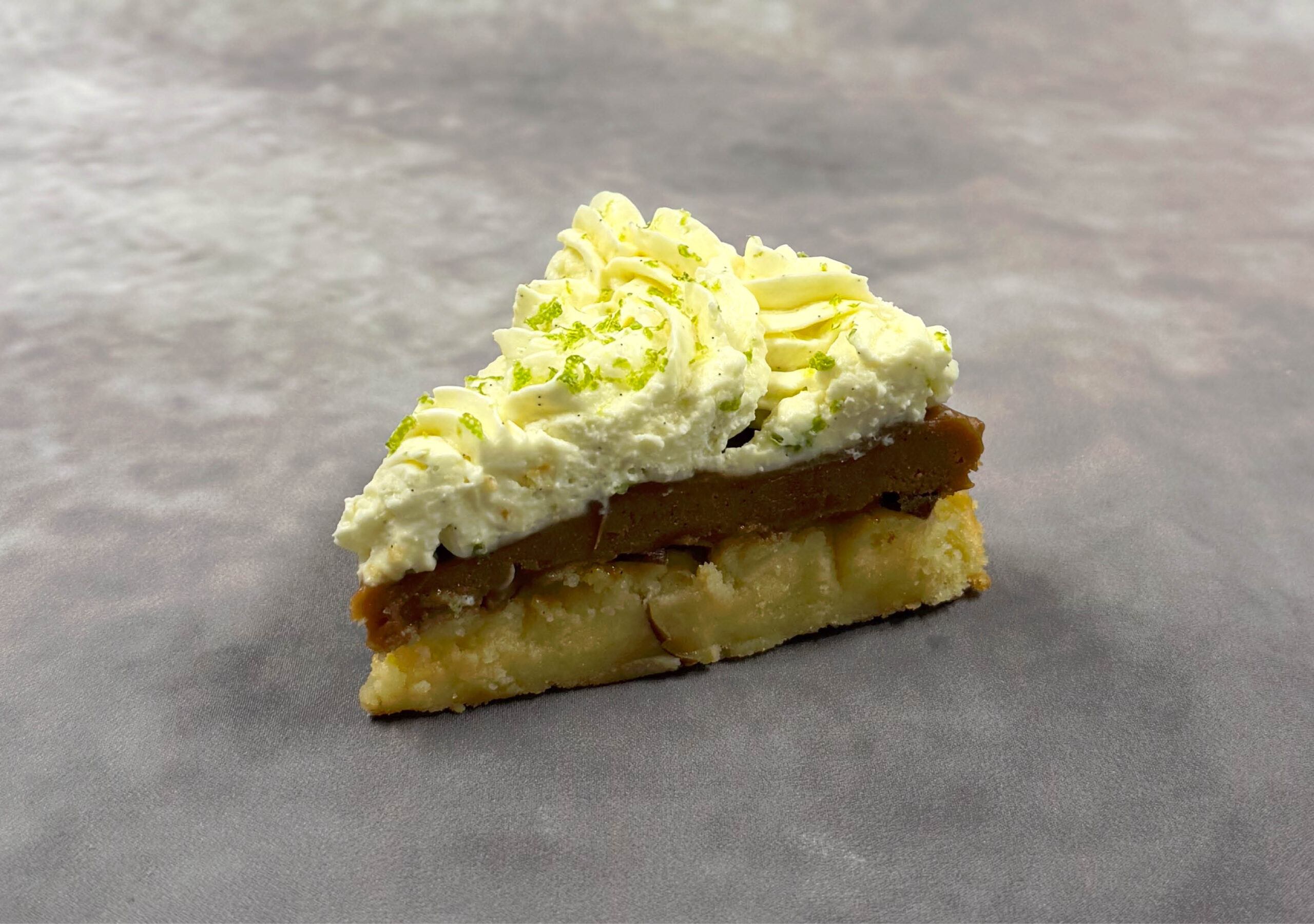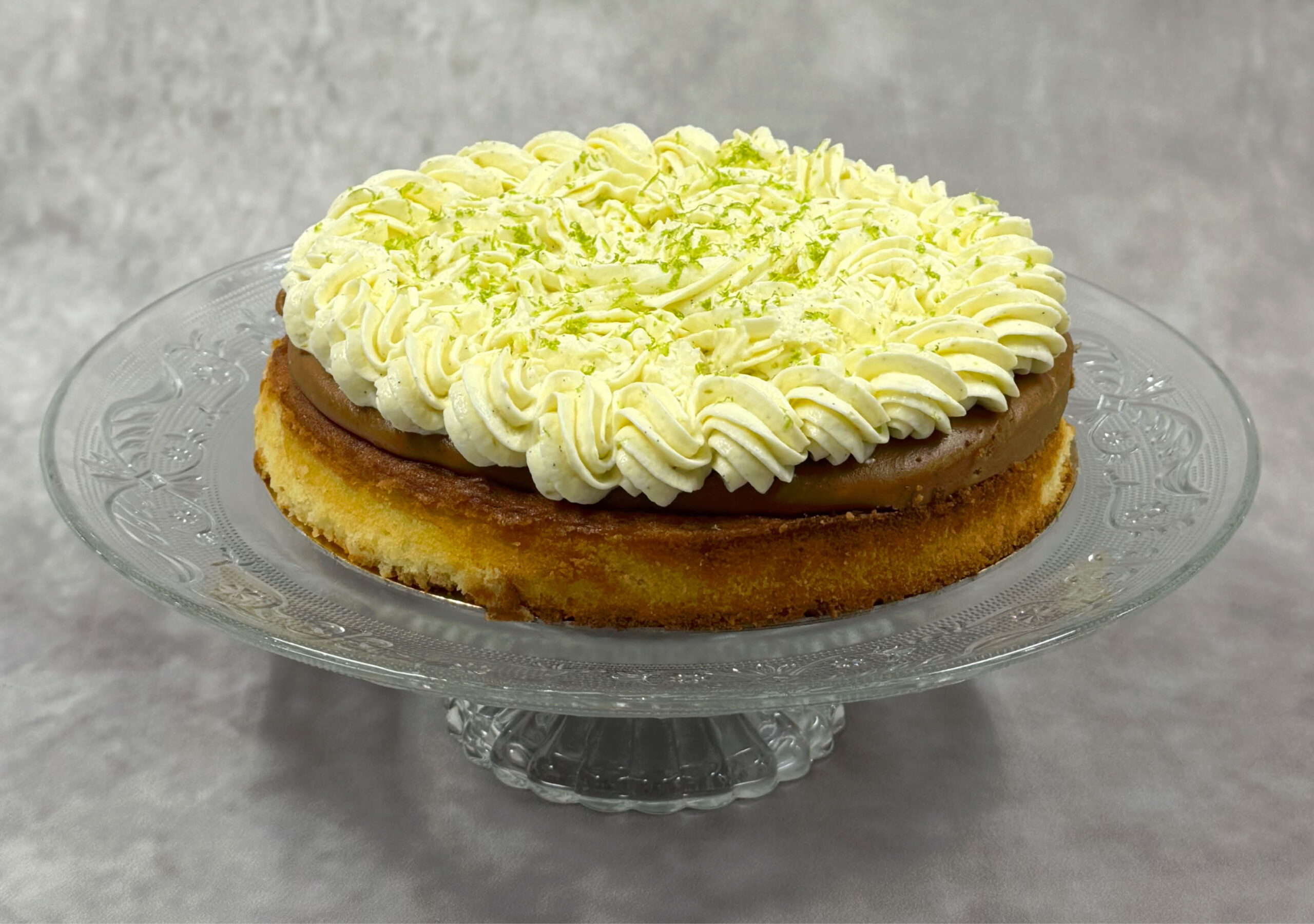 Mandelmassa, ägg, smör, päron, mjölk, grädde, sirap, socker, vaniljstång, creme fraiche, lime och gelatin.